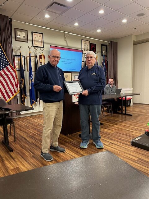 President Mike Sheehan presenting the Kiwanis Vantine Life Fellowship Award to Al Johnsrud